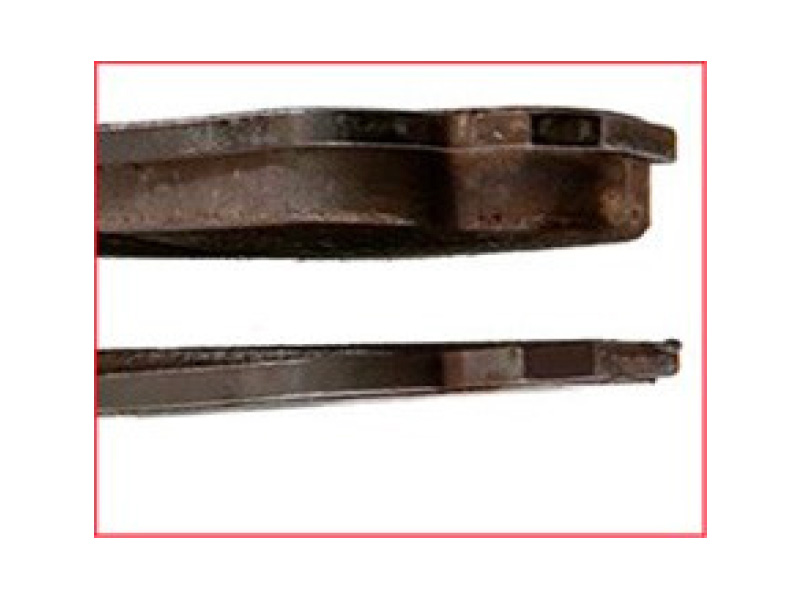 - Serious damage to brake disc surface, caused by the steel back plate contacting the cast iron brake disc